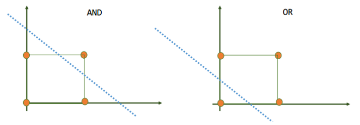 - 하나의 퍼셉트론으로 AND/OR 연산을 할 수 있었던 이유