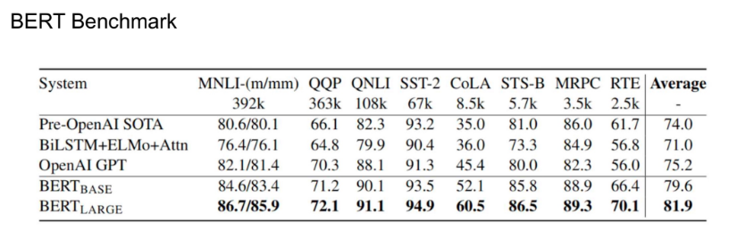 - 훈련 데이터: Wikipedia(25억 단어) &BookCorpus(8억 단어) ≈ 33억 단어