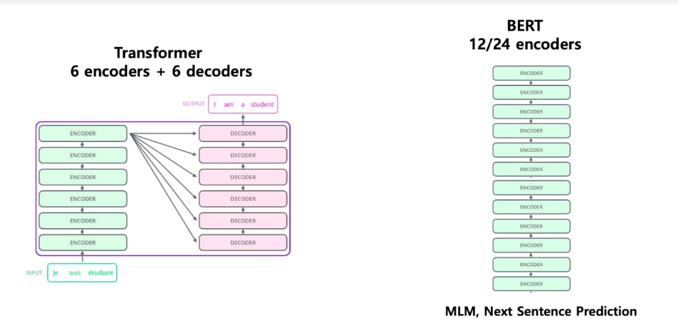 - 트랜스포머의 ENCODER로 만든게 BERT