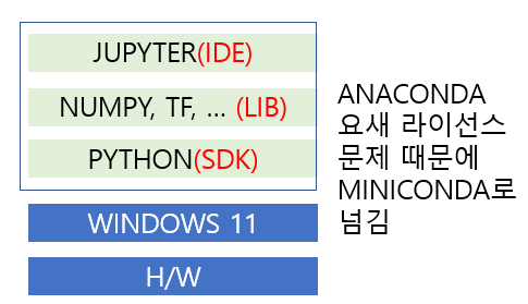 - 아나콘다는 IDE, 파이썬 등 여러 개발용 도구를 묶어놓은 패키지