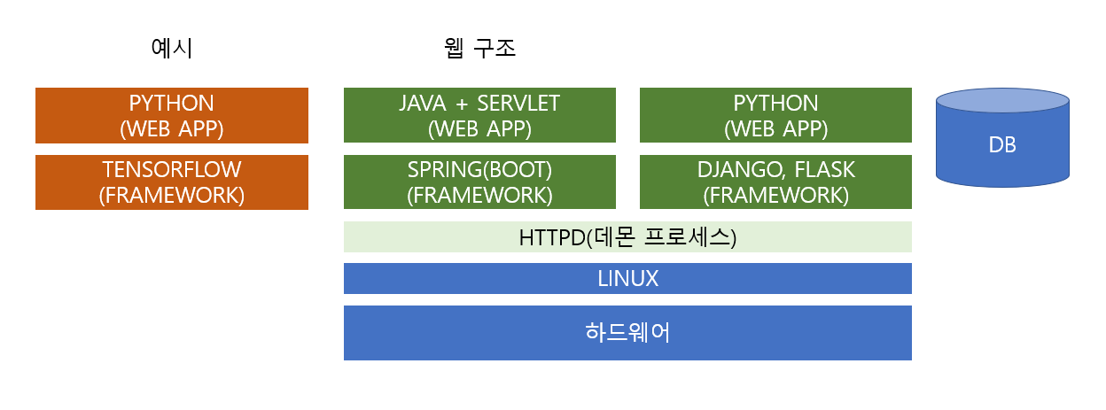 - 웹 서버 프로그래밍을 자바 기반으로 웹을 프로그래밍할 수 있게 아파치 재단에서 자바로 웹 관련한 많은 기술을 지원함