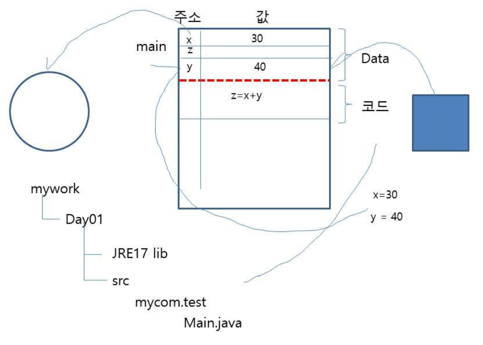 int z = 0; // x + y를 z라는 값을 올린다.(메모리(주기억장치))