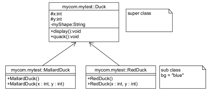 - Mallad Duck, Red Duck은 Duck 클래스를 상속