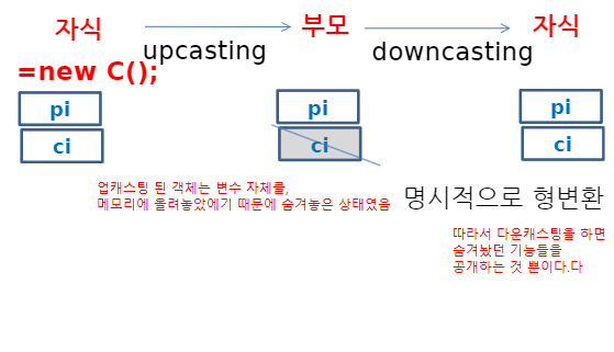 - 업캐스팅이 일어나면, 부모로부터 물려받은 pi에 대해서만 접근권한이 생긴다.