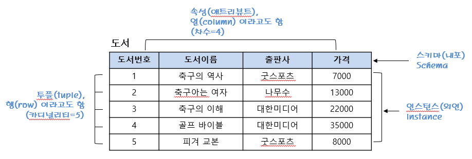 릴레이션 이름(속성1, 속성2, ..., 속성 N)